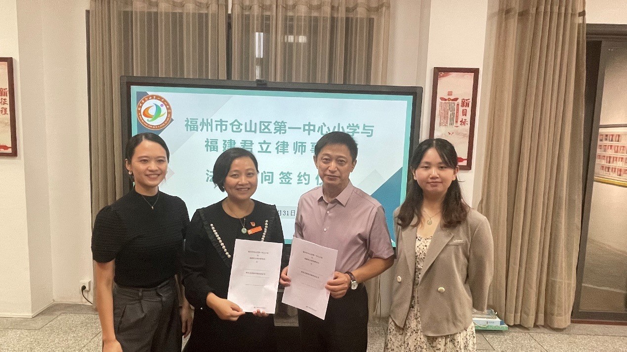 福州市仓山区第一中心小学校长黄晓卿、副校长陈星、办公室主任吴晓红,福建君立律师事务所党支部书记、合伙人江鹰律师、方笑语律师共同出席了仪式。