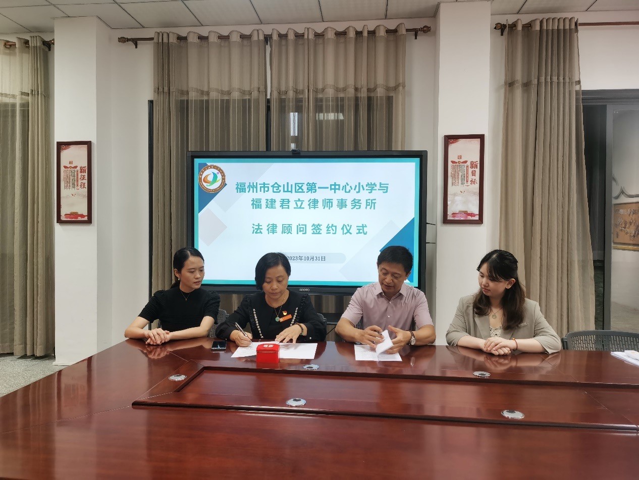 为进一步延伸法律服务,全面推进依法治教、依法治校,助力平安校园建设,2023年10月31日,福建君立律师事务所与福州市仓山区第一中心小学举行了学校聘请常年法律顾问的签约仪式。