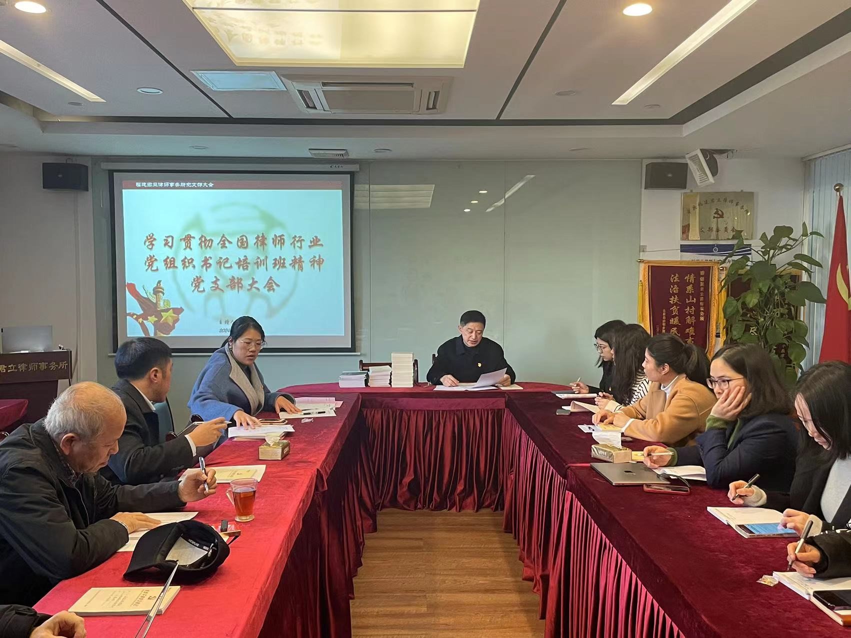 1月11日下午,中共福建君立律师事务所支部全体党员在热烈的气氛中开始了“学习贯彻全国律师行业党组织书记培训班精神”的支部大会,江鹰书记转达了12月13日至16日在福建省委党校通过视频直播形式学习贯彻习近平新时代中国特色社会主义思想和党的二十大精神的学习情况,要求党员律师深入学习贯彻习近平法治思想和党的建设的重要思想,在践行执业为民宗旨上矢志不渝,在恪守职业道德上永葆本色,努力做党和人民满意的好律师。